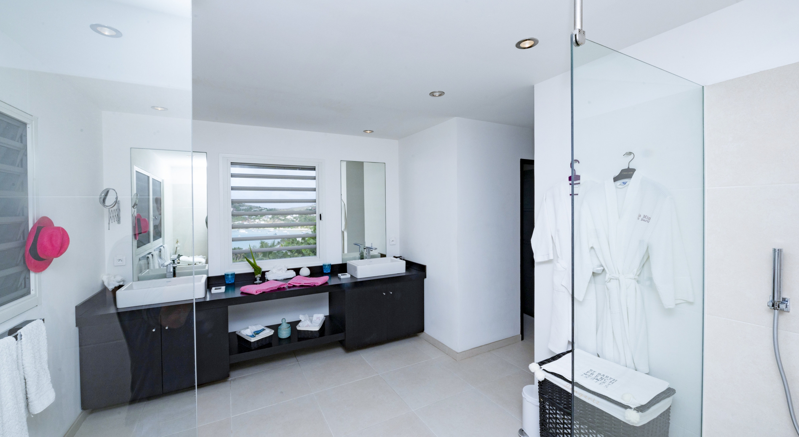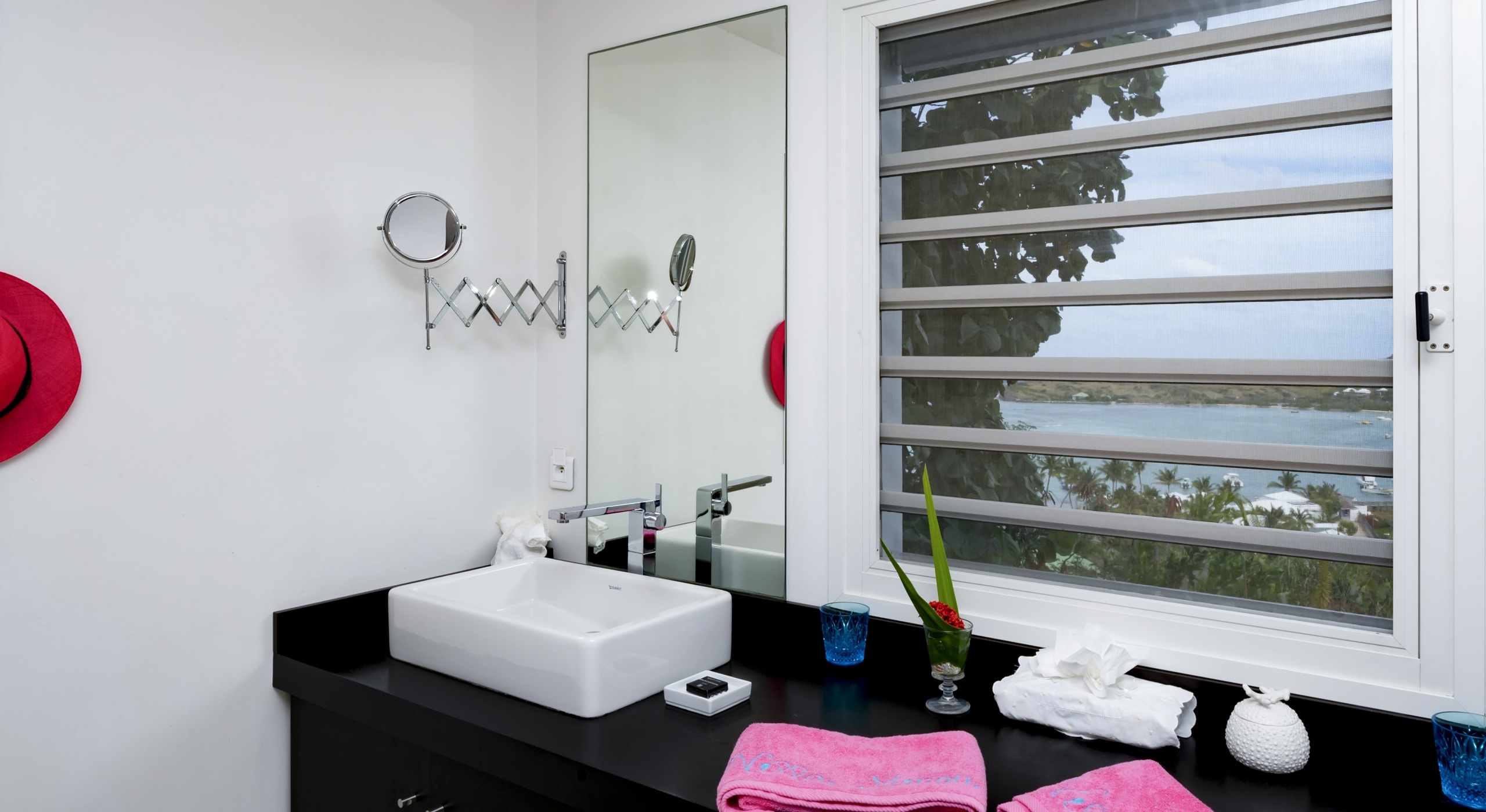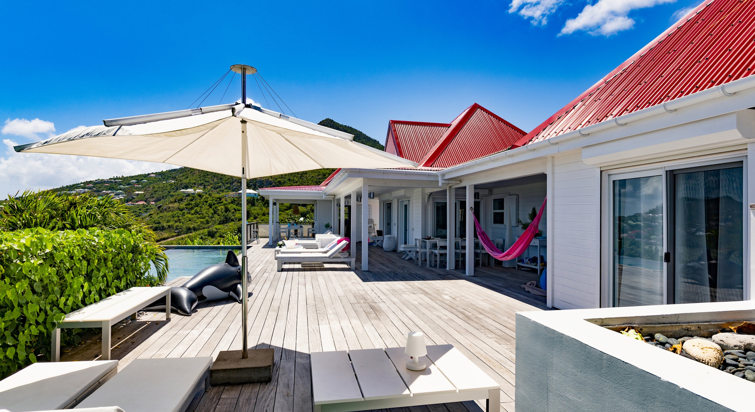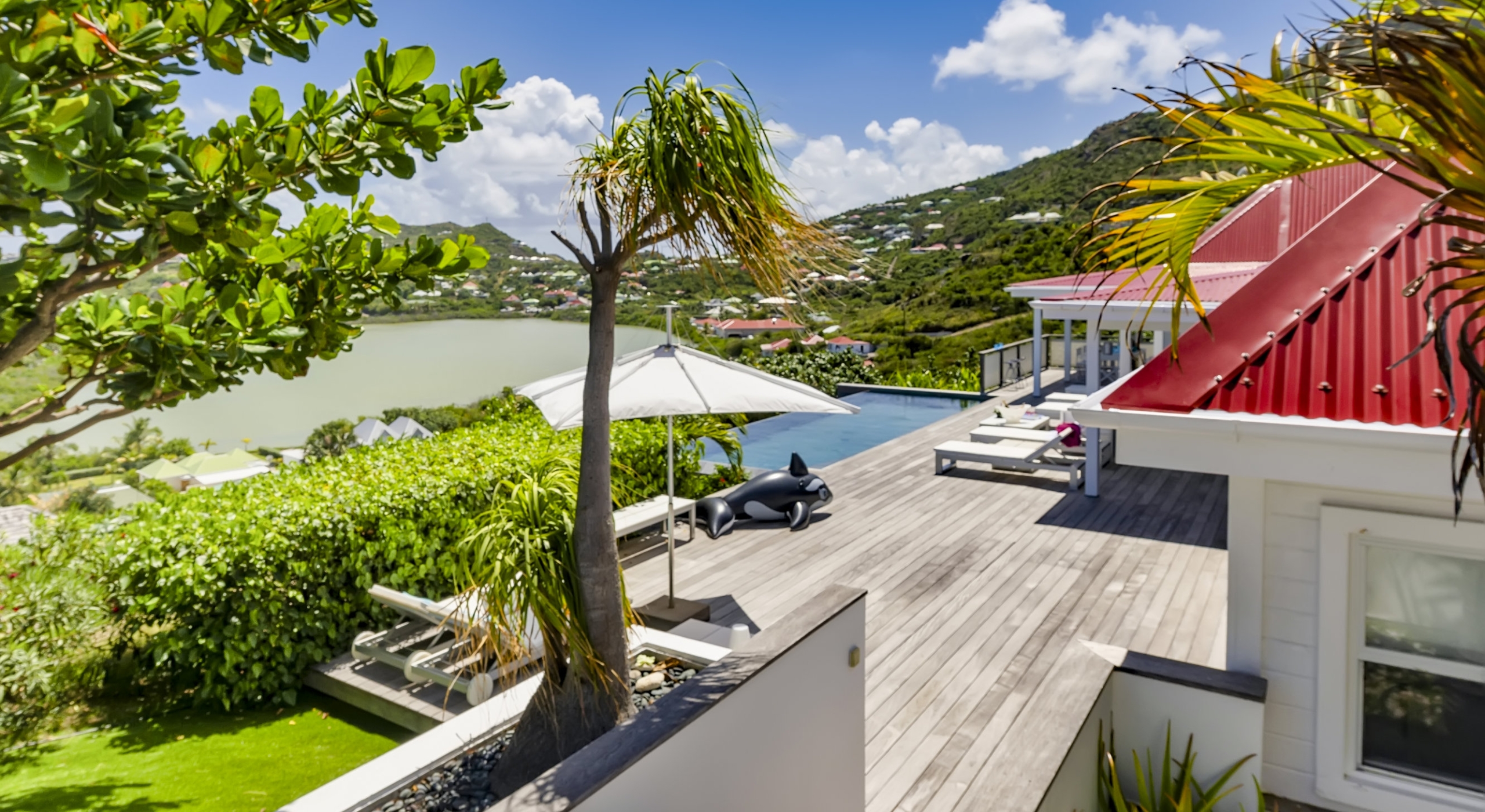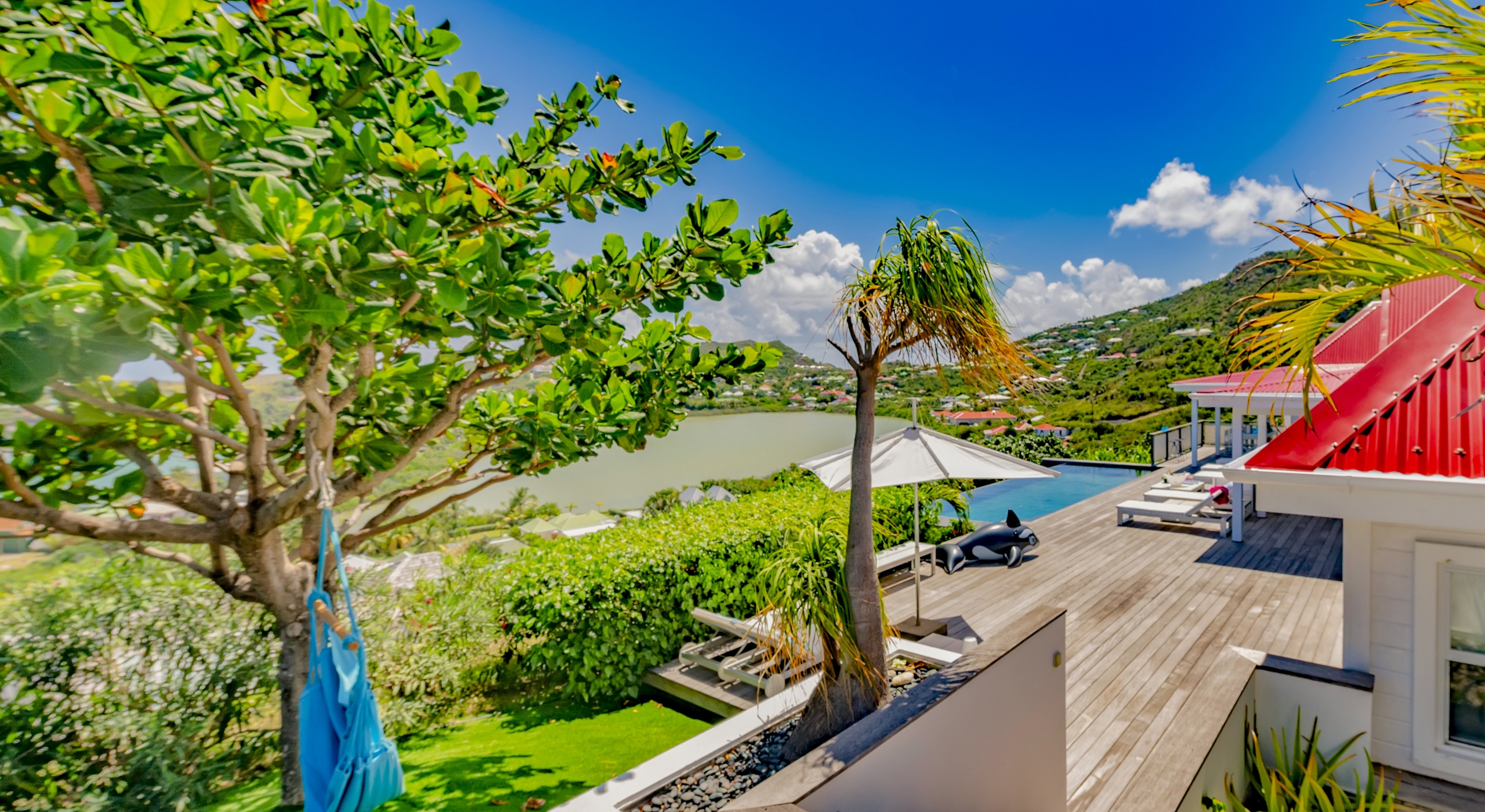 “Summer Breeze” is a villa located on the heights of Grand Cul de Sac, only a few minutes walk from the lagoon and the hotels Le Sereno and Le Barthélemy.