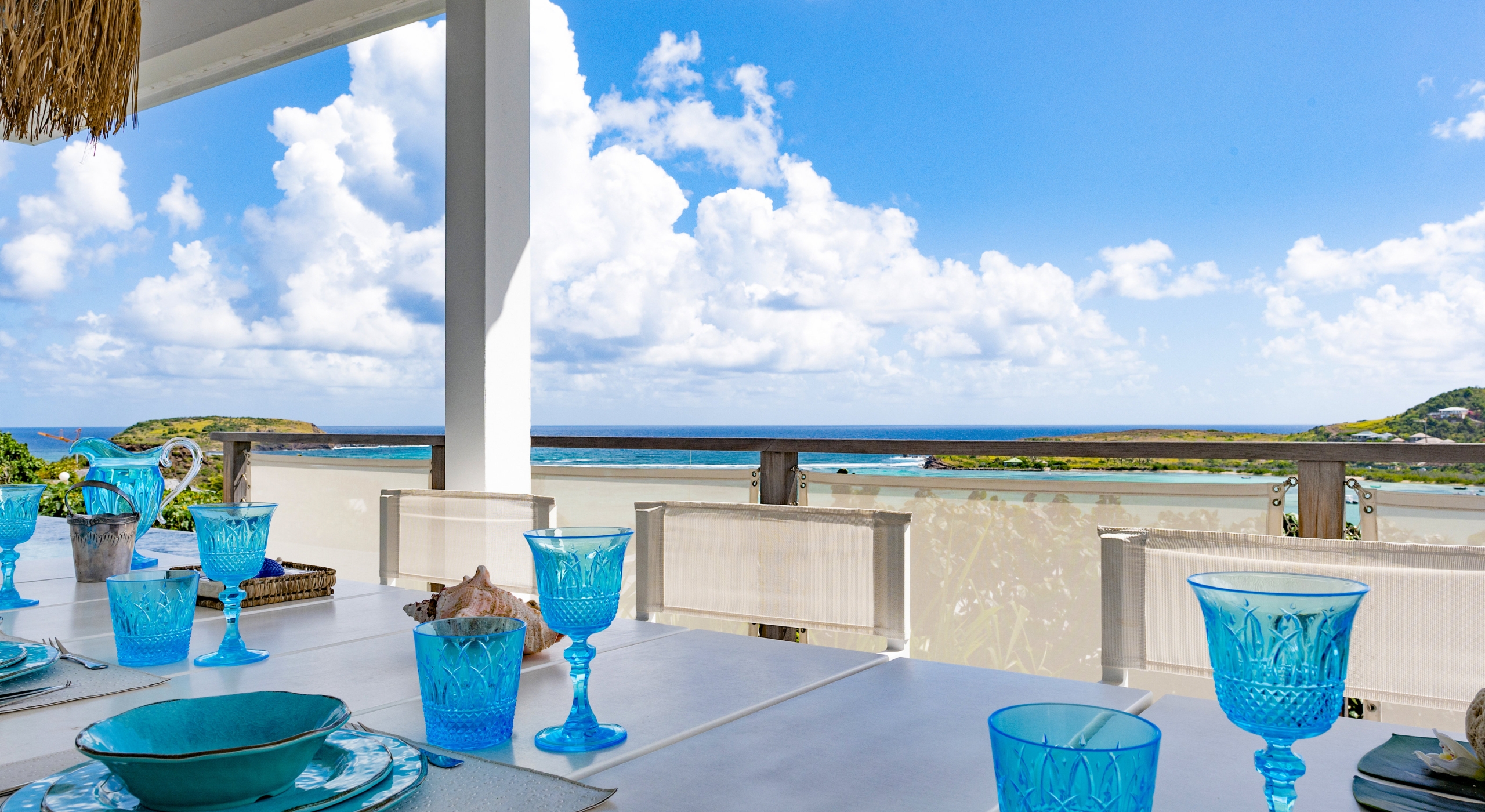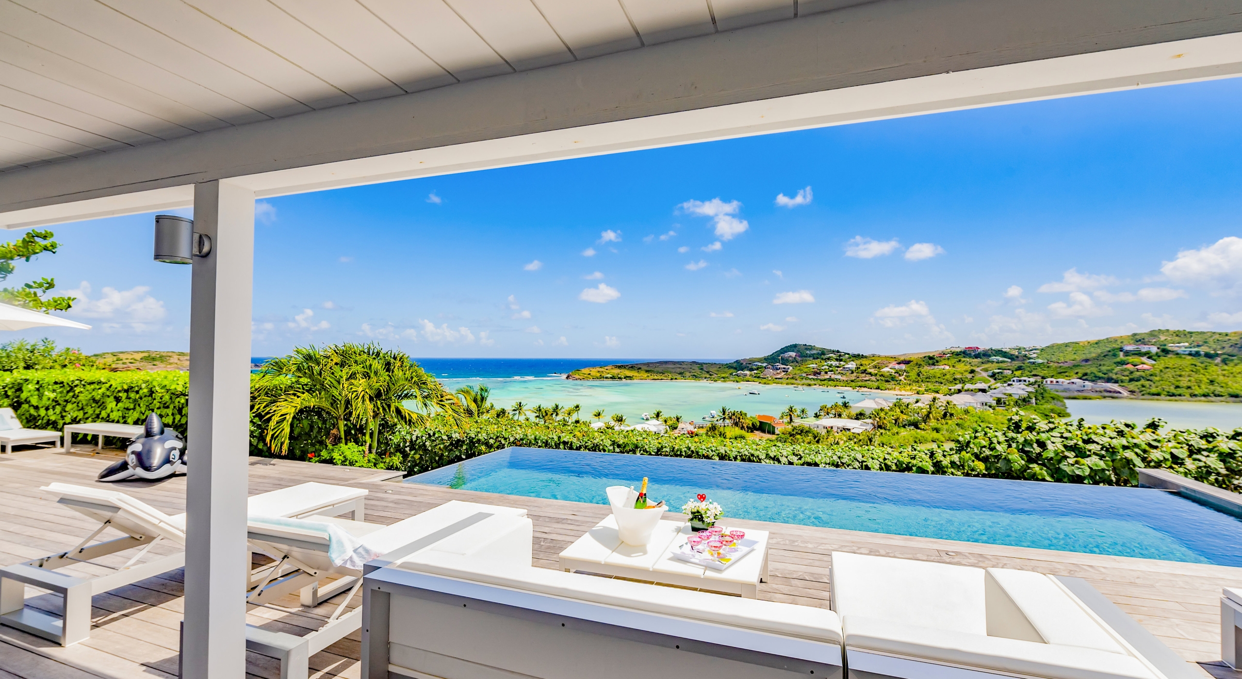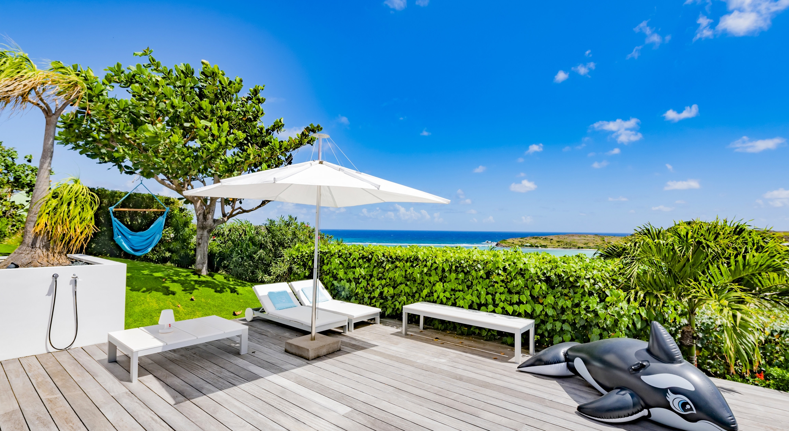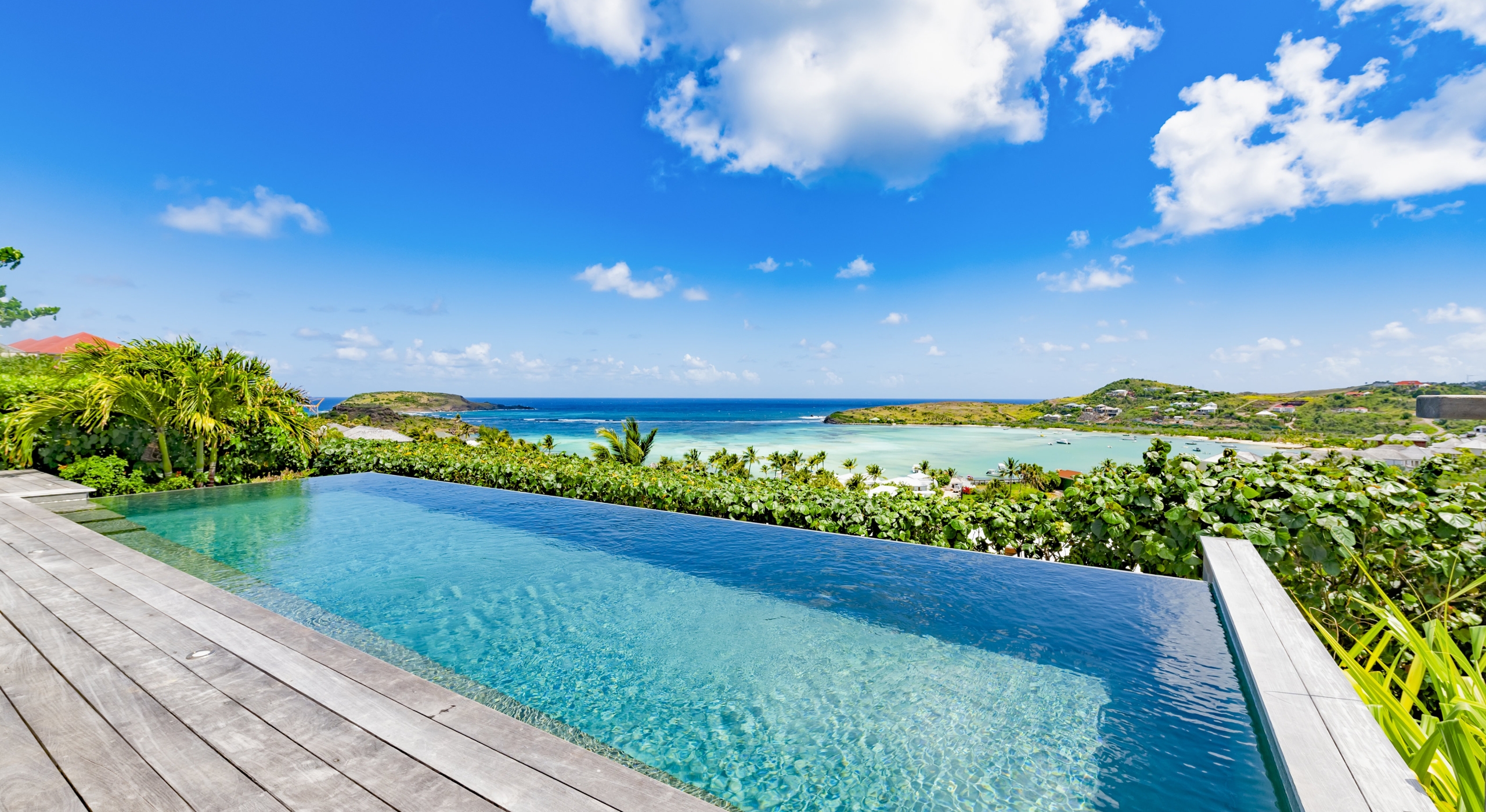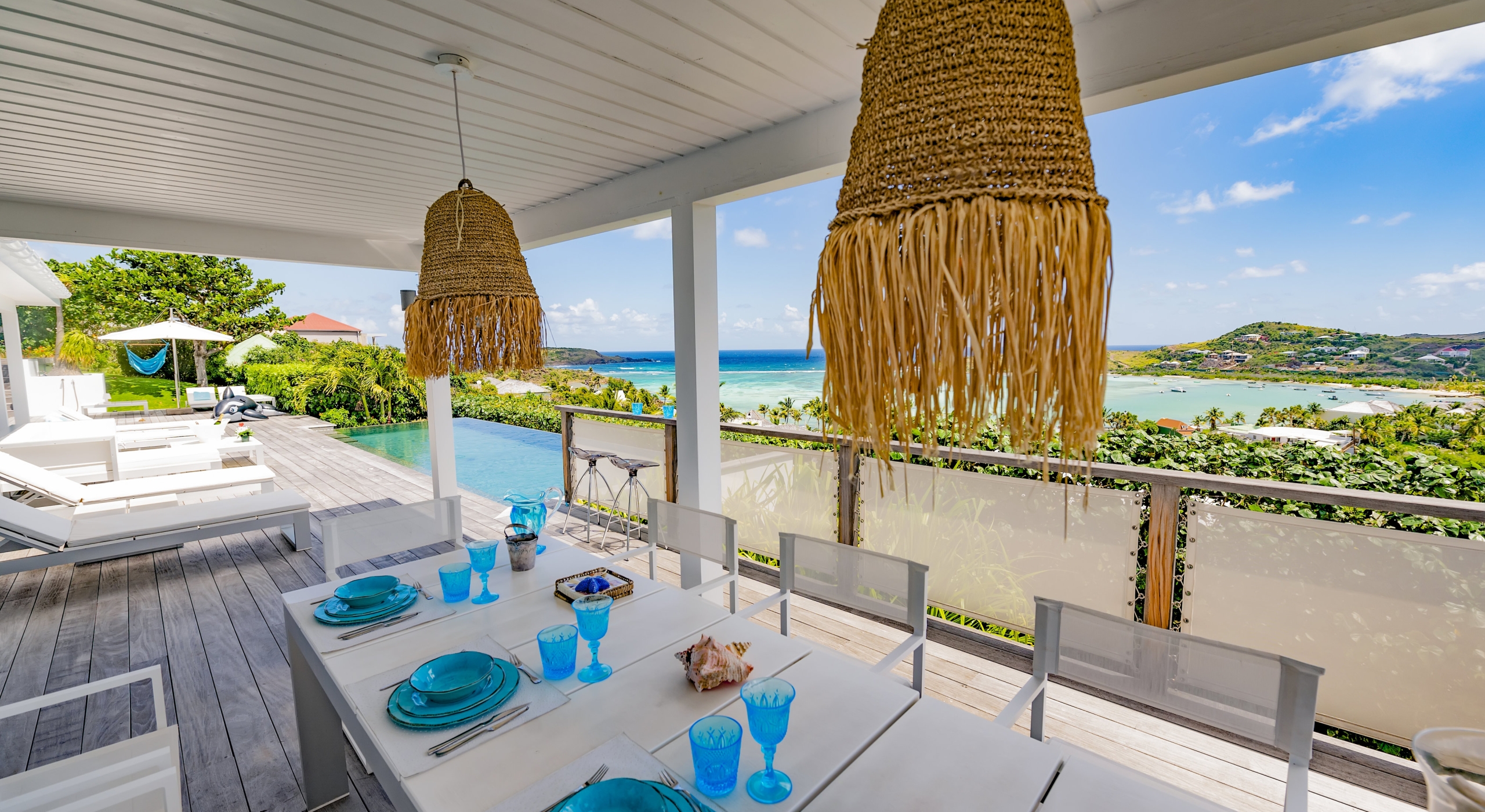 “Summer Breeze” is a villa located on the heights of Grand Cul de Sac, only a few minutes walk from the lagoon and the hotels Le Sereno and Le Barthélemy.