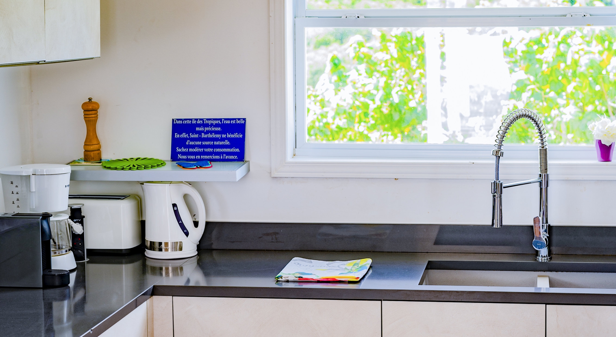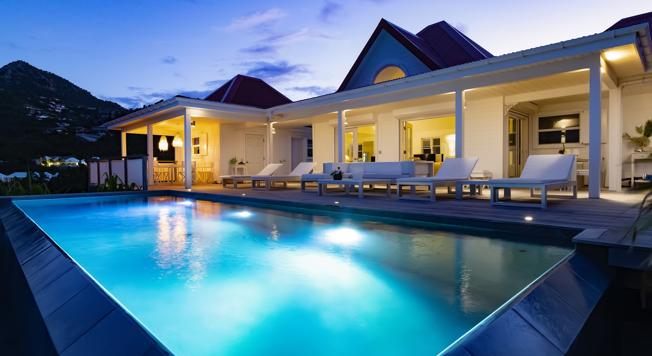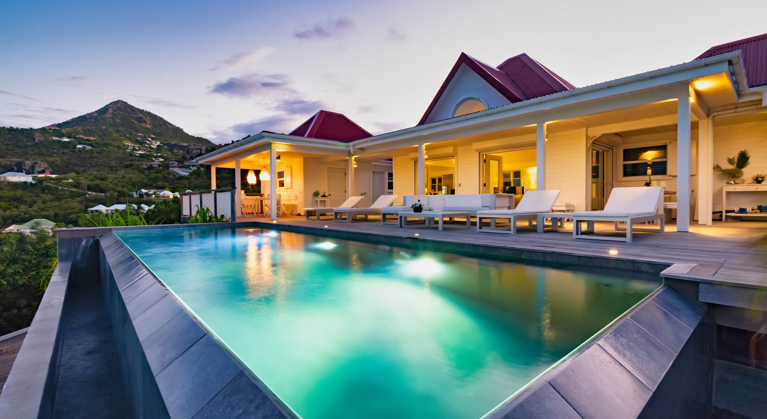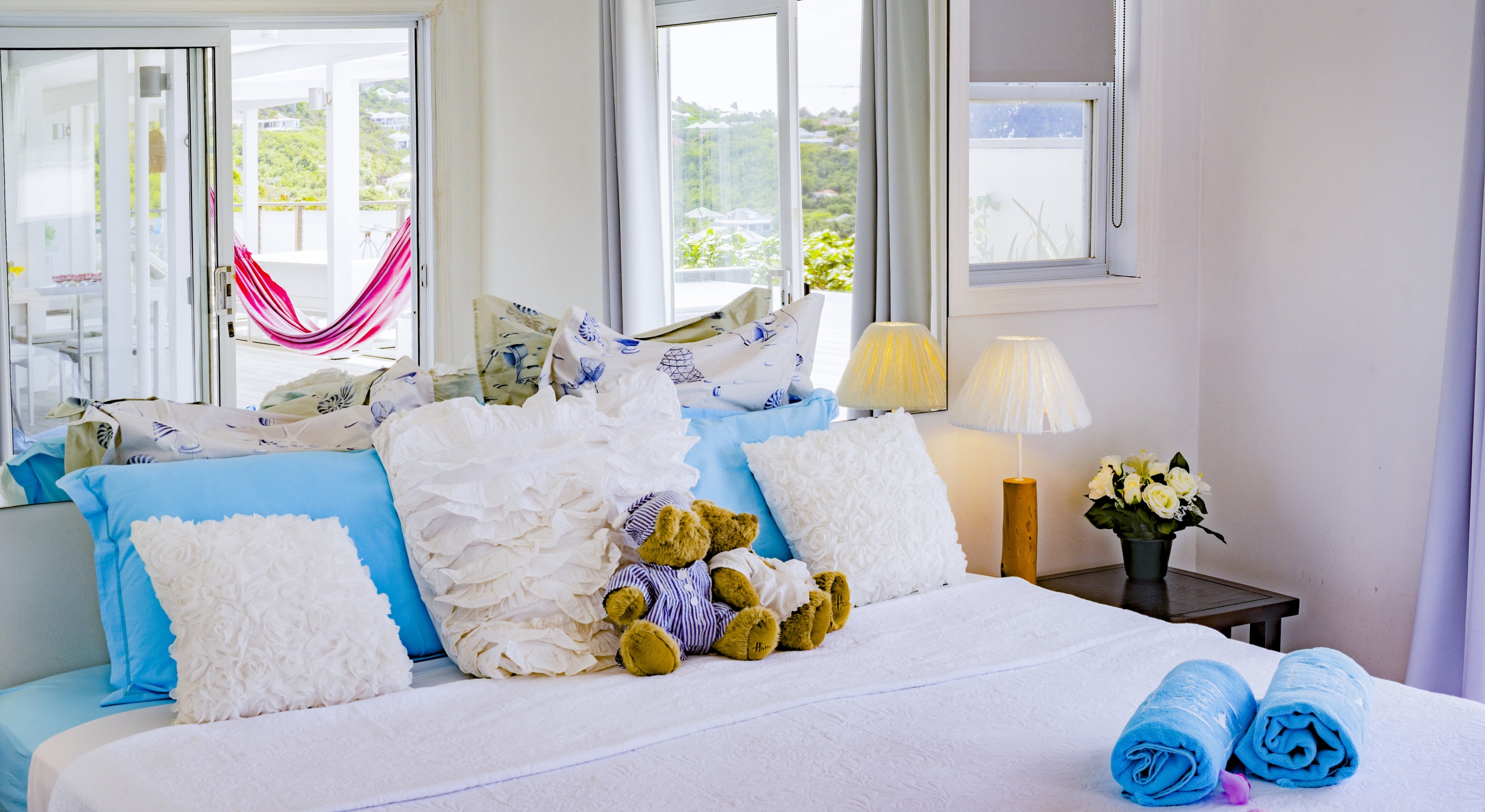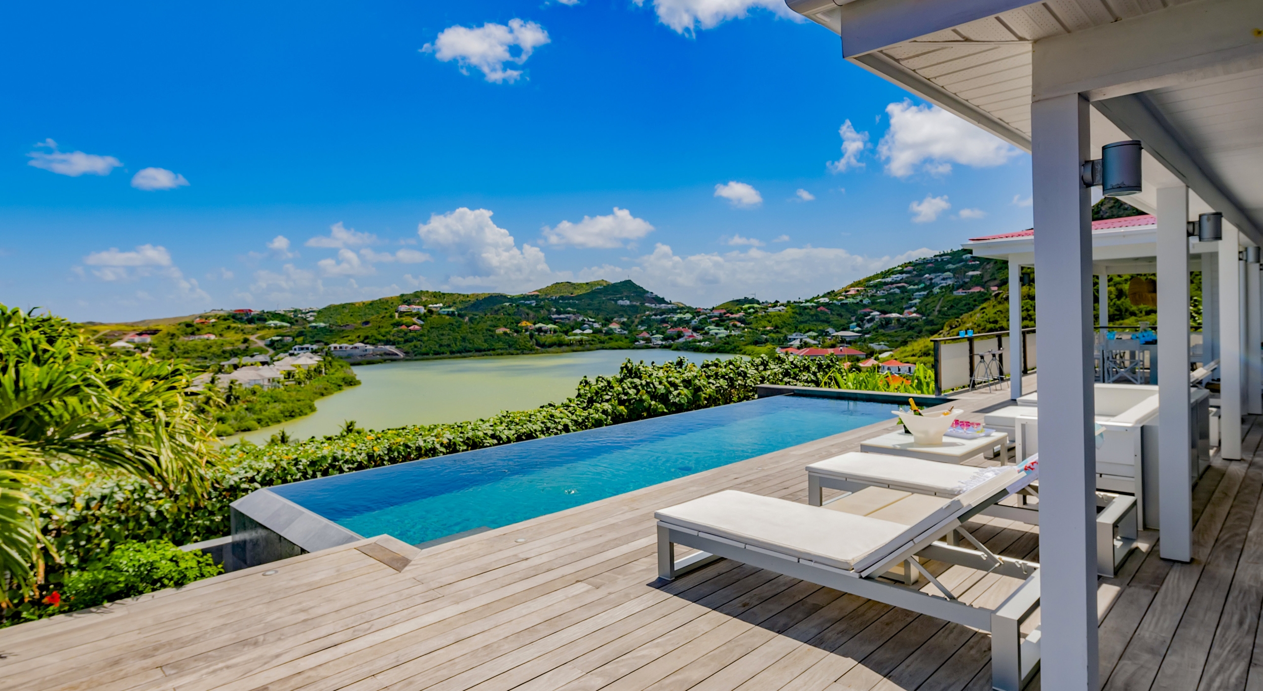 “Summer Breeze” is a villa located on the heights of Grand Cul de Sac, only a few minutes walk from the lagoon and the hotels Le Sereno and Le Barthélemy.